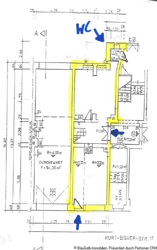 Zur Gewerbeeinheit gehört eine Toilette, welche sich außerhalb der Mietsache, zugänglich durch das Treppenhaus, befindet.